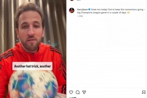 體育資訊12月7日訊 拜仁在本輪德甲5-0完勝斯圖加特,凱恩替補(bǔ)上演帽子戲法。他也在賽后通過社媒紀(jì)念。