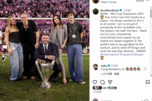 邁阿密國(guó)際老板貝克漢姆社媒曬家人與獎(jiǎng)杯的合照,并寫(xiě)道:”2025年美職聯(lián)冠軍??自從作為球員捧起這座獎(jiǎng)杯以來(lái),我就一直渴望以老板身份再次奪冠。”