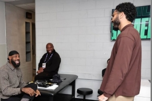 本場(chǎng)比賽,詹姆斯和塔圖姆都因傷沒有出戰(zhàn),不過(guò)他們進(jìn)行了一場(chǎng)會(huì)面。