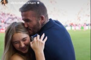 在奪冠現場,邁阿密國際老板貝克漢姆與家人一起慶祝奪冠,在維多利亞曬出的圖中,貝克漢姆親吻小七。