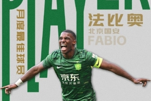 體育資訊12月8日訊 2場(chǎng)比賽攻入6球的國(guó)安外援法比奧,當(dāng)選為中超11月最佳球員。