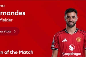 體育資訊12月9日訊 英超官方宣布,B費當(dāng)選曼聯(lián)4-1狼隊的球迷票選最佳球員。