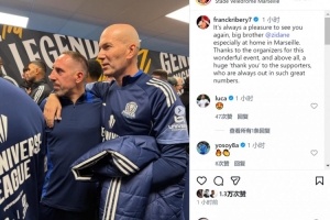 里貝里與齊達(dá)內(nèi)出席了在馬賽舉辦的“宇宙聯(lián)賽”活動(dòng),里貝里社媒曬出與齊達(dá)內(nèi)的合照,配文:“再次見到你總是很高興,老大哥齊達(dá)內(nèi),尤其是在馬賽的主場(chǎng)。感謝組織方帶來這場(chǎng)精彩的活動(dòng),更要衷心感謝那些總是大批到場(chǎng)支持我們的球迷們。”