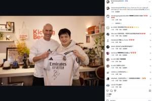 同時樊振東艾特齊達(dá)內(nèi)寫道:親愛的齊祖,謝謝你暖心的禮物,也希望你喜歡我送的禮物,下次我們一起踢足球。