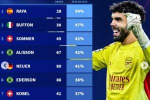 體育資訊12月11日訊 德轉(zhuǎn)盤點(diǎn)了近10年歐冠門將零封場次占比排行榜(至少25次出場),其中拉亞54%的比賽能夠零封居首,具體如下(比賽場次+零封比例):