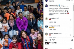 體育資訊12月12日訊 拉什福德參加巴薩基金會活動,與孩子們互動并合影。