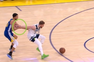 GIF-庫里逼迫迪文岑佐失誤,森林狼挑戰(zhàn)成功,改判庫里犯規(guī)
