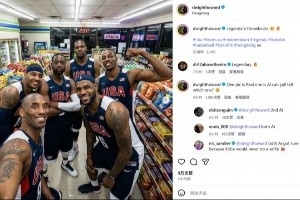 其中一張照片是美國隊巨星在一家超市里的合照、另一張是霍華德與奧拉朱旺、尤因、大衛(wèi)·羅賓遜在香港的合照。霍華德配文:“傳奇再現,經典瞬間!”