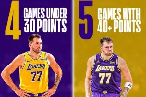 本賽季至今,他砍下40+得分的場次比低于30分的場次還要多。