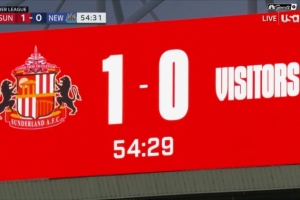 體育資訊12月15日訊 桑德蘭在本輪英超1-0擊敗紐卡,而現(xiàn)場畫面可以看到,桑德蘭沒有將死敵紐卡的隊名和隊徽放到記分牌上。