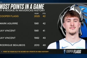 獨(dú)行俠隊(duì)史新秀單場得分榜:
