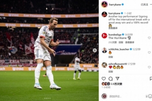 凱恩社媒曬出比賽照片,并寫道:“又一場頂級表現(xiàn)!以一場精彩的客場勝利和全勝戰(zhàn)績迎來國際比賽日。”