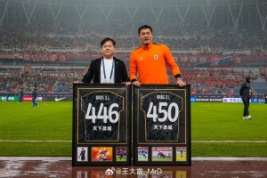7月27日山東泰山對陣梅州客家的比賽,王大雷首發(fā)出戰(zhàn),他也以446場成為中國頂級聯(lián)賽出場王。在昨天泰山對陣玉昆賽前,王大雷領(lǐng)取了446場的紀(jì)念球衣,他同時(shí)還領(lǐng)取了中國頂級聯(lián)賽450次出場紀(jì)念球衣。