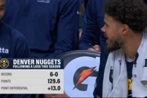 今日掘金135-112大勝爵士。至此,本賽季掘金在輸球后的第二場(chǎng)比賽中戰(zhàn)績?yōu)?勝0負(fù),場(chǎng)均轟下129.6分,場(chǎng)均凈勝13分。