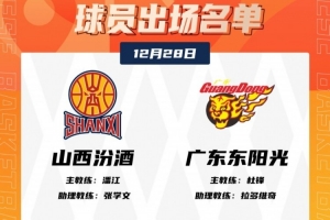 體育資訊12月28日訊 CBA常規(guī)賽今晚上演晉粵大戰(zhàn),山西主場迎戰(zhàn)廣東。