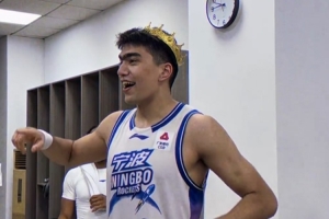 賽后更衣室內(nèi),總經(jīng)理劉家成用英文稱贊外援們的表現(xiàn),并給魯吐布拉戴上王冠。